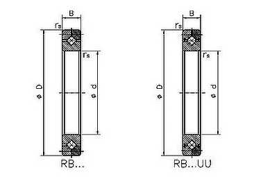 RB系列(THK對應為RB系列,IKO對應為CRB系列,NSK對應為NRXT系列)為交叉圓柱滾子軸承的基本型,內、外圈尺寸被小限度地小型化,其結構為外圈是兩半型,并通過螺栓或特殊鉚釘進行固定,內圈是一體設計,適合于要求內圈旋轉精度高的部位,例如機床分度工作臺的旋轉部位。